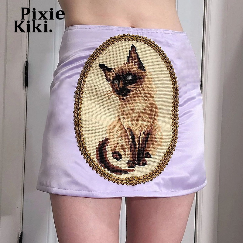 PixieKiki Cute Cartoon Animal Print Mini Skirt Y2k Aesthetic Vintage Clothes Sexy Satin Skirts Womens Summer P85-BG10