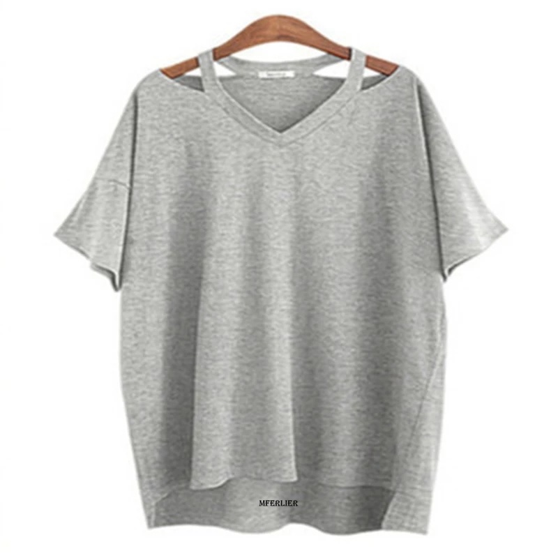 Plus Size 7XL 150KG Women Large Tshirt Black Top Women Loose T Shirt Summer Tee Shirt For Femme V Neck