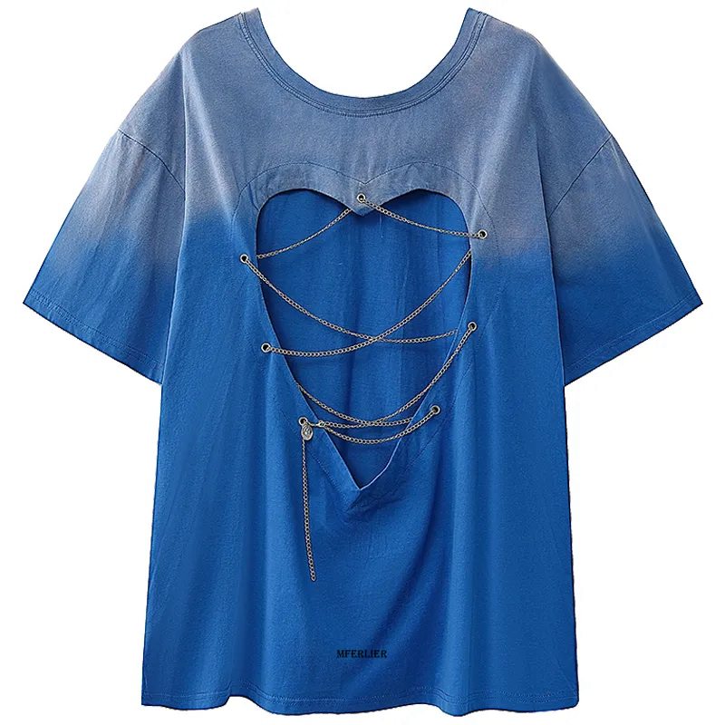 Plus Size 6XL 150kg Summer Short Sleeve Cotton T-Shirt Female Harajuku Casual Hearted Chain Tees Loose Oversized Top