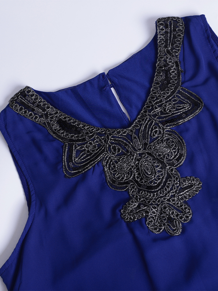 Plus Size Dresses Women Elegant Embroidery Evening Party Dress Summer Blue Mesh Sleeveless Casual Dress Club Outfits