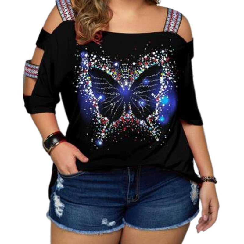 Plus Size Tee Shirt Woman Large Size Womens T-Shirt 5Xl Cutout Tunics Vonda Plus Size Women Tunica Feminina Blusas Fiesta