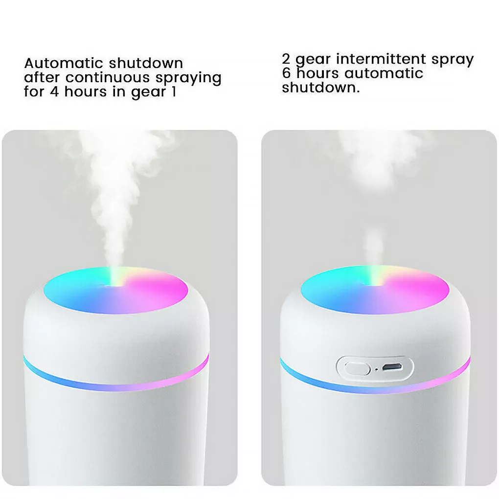 The mini humidifier features one key switch and a colorful atmosphere light effect.