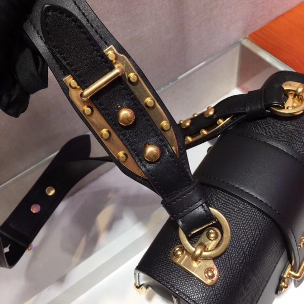 Prada Cahier Shoulder Bag In Grey/Black Leather