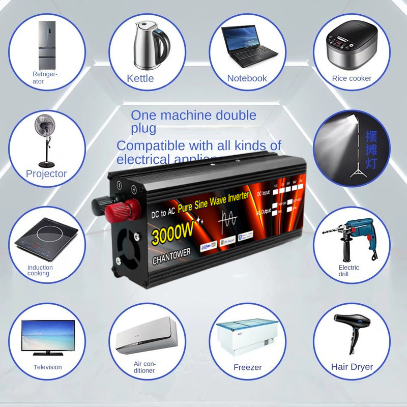 Pure Sine Wave Inverter 12v 220v Solar Inverter 1000W 2000W 3000W 4000W Voltage Transformer Power Converter Panel Car Inverter