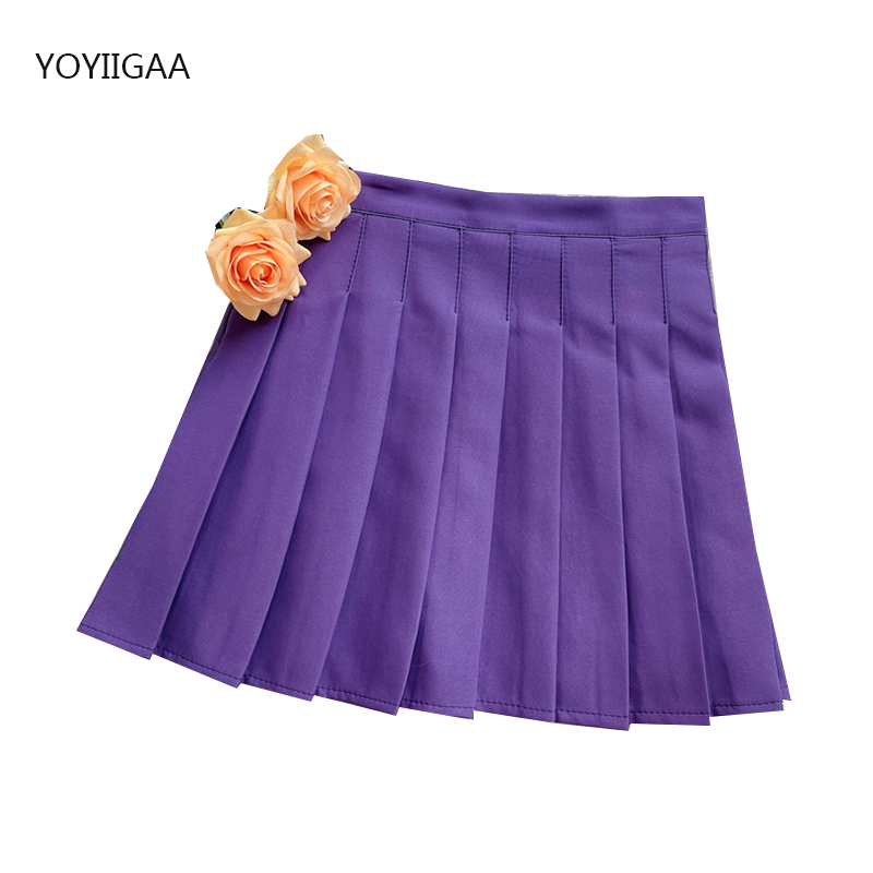 Purple Women Pleated Skirts High Waist Woman Plaid Mini Skirt Preppy Style Casual Female Skirts Sweet A-line Ladies Short Skirt