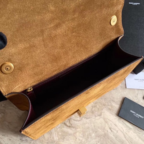 Saint Laurent Carre Satchel Bag In Brown Suede Leather