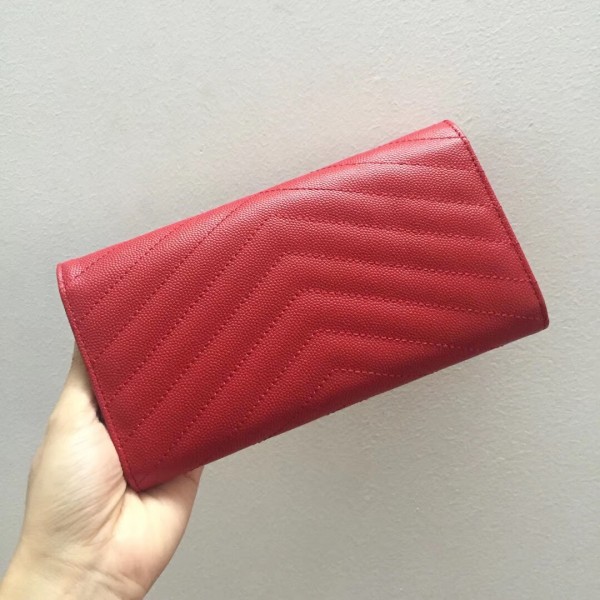Indulge in this Saint Laurent large monogram wallet wallet to add the Parisian label’s hard-edged opulence to your ensemble. Crafted from grain de poudre embossed leather, this design features multiple card slots and a zipped interior compartment, perfect for securely storing your valuables. The chevron patterned luxurious quilting is punctuated by the iconic ‘YSL’ logo, reflecting the label’s timeless appeal.