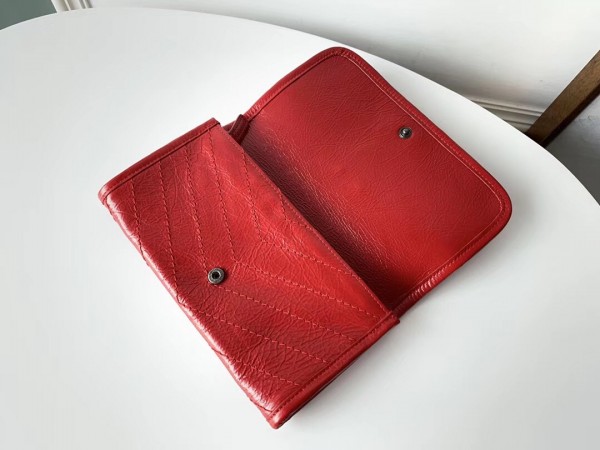 Inspired by the iconic Niki handbag, the Saint Laurent’s Niki large wallet in supple glossed-leather that’s crinkled to look somewhat vintage combines a functional design with fashion appeal. It’s embroidered with chevrons and decorated with iconic ‘YSL’ hardware. Sensorial yet functional, it is still large enough to fit all your daily essentials.