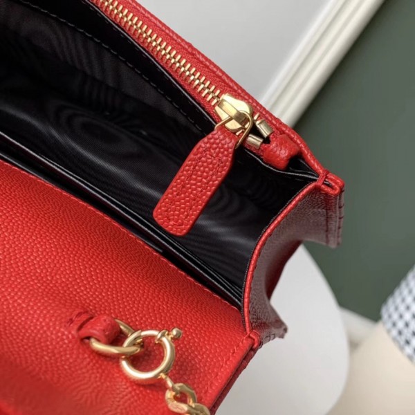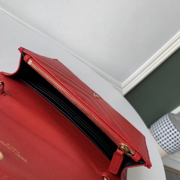 Saint Laurent WOC Envelope Chain Wallet In Red Leather