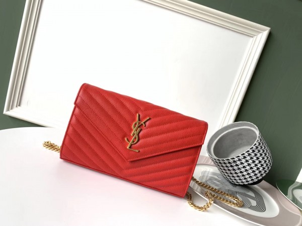 Saint Laurent WOC Monogram Chain Wallet In Red Leather