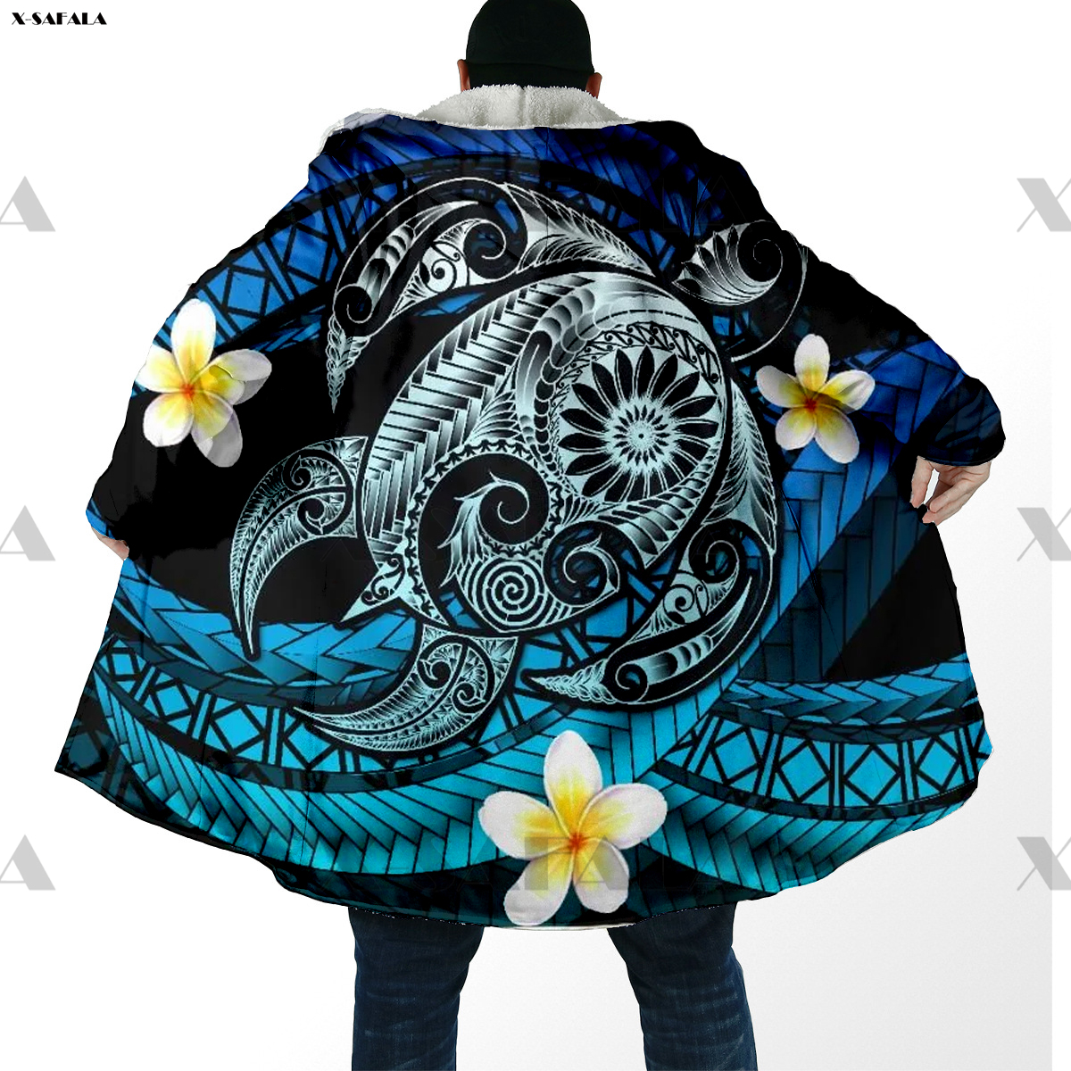 Samoa Polynesian Coconut 3D Printed Hoodie Long Coat Hooded Cloak Thick Down Jacket Outerwear Cotton Pullovers Dunnes