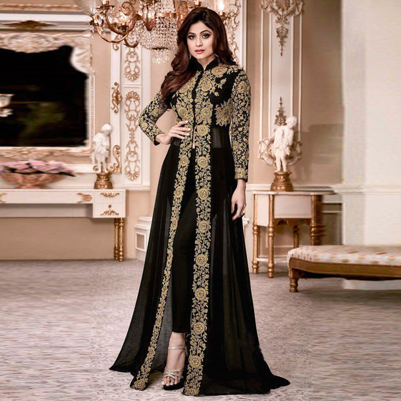 Saudi Arabia Muslim Long Skirt Retro Ethnic Print Noble Women's Suit Islamic Women's Dress Dubai Arab Emirates Long Skirt Pants