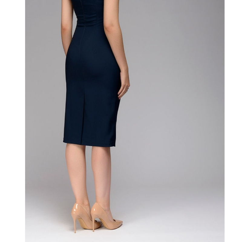 Spring Summer dress Women Slim dress Short Sleeve Office Business Dress Elegant Sheath Party Dark Blue Dress