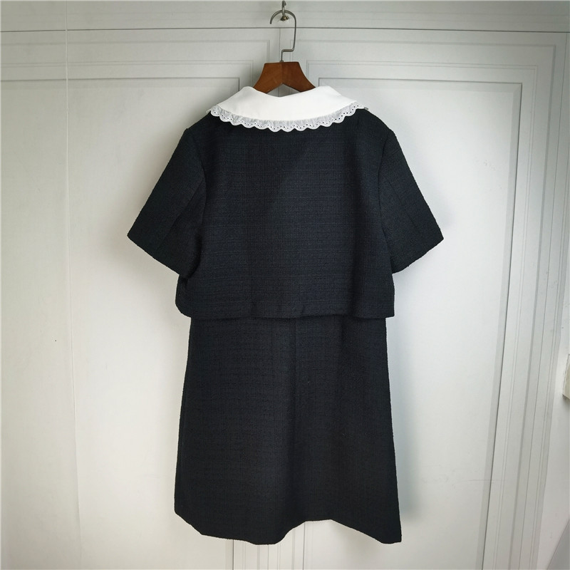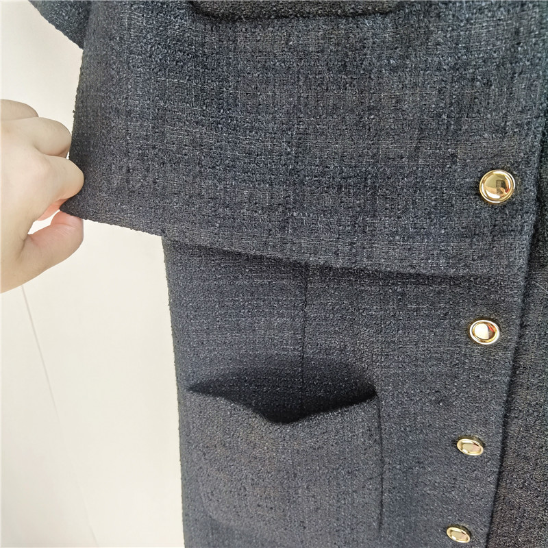 Spring and Autumn Doll Hook Flower Large Lapel Woolen Dress Single Breasted