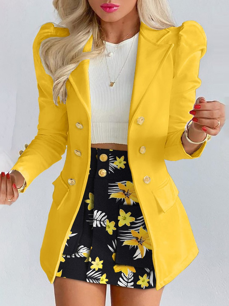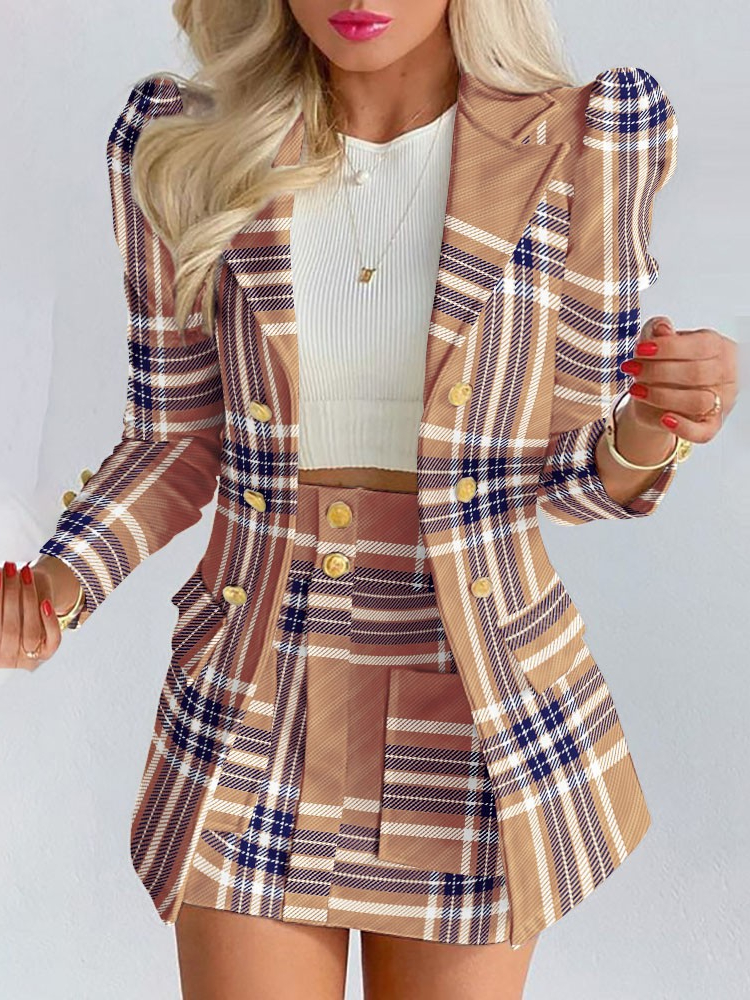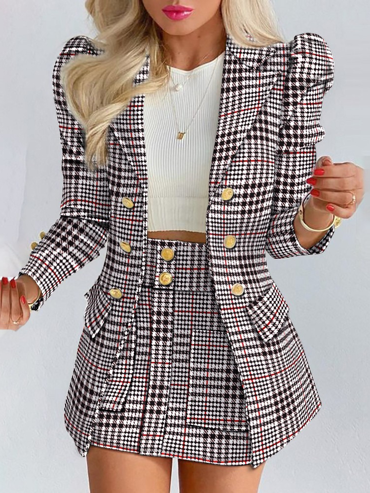 Spring and Autumn Leisure Suit Women's Double-breasted Long Sleeve Skirt Suit 2-piece Office Women Dress Skirt Set