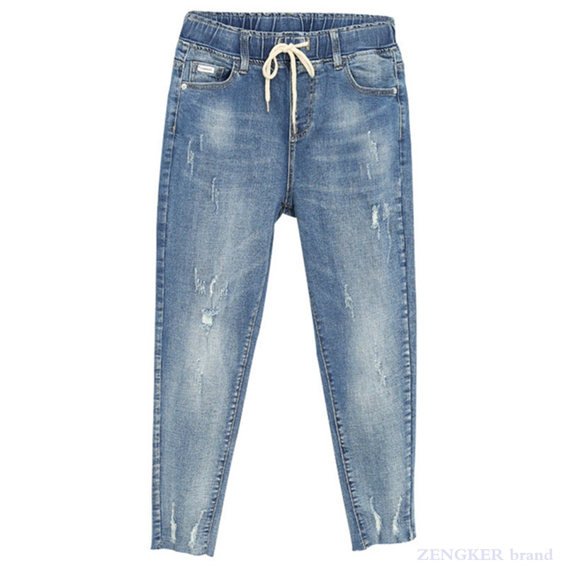 Spring summer plus size jeans women's stretch fat sister nine-point pants were thin high waist pants plus size 5xl
