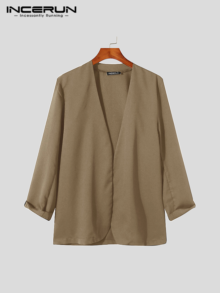 Stylish Men Blazer Leisure Style Loose Buttons Male All-match Simple Collarless Long-sleeved Suits S-5XL INCERUN Tops