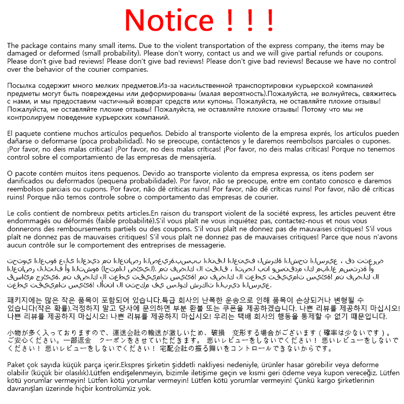 3. If the damage is caused by logistics, please inform us in time and we will arrange a full refund or resend for you.