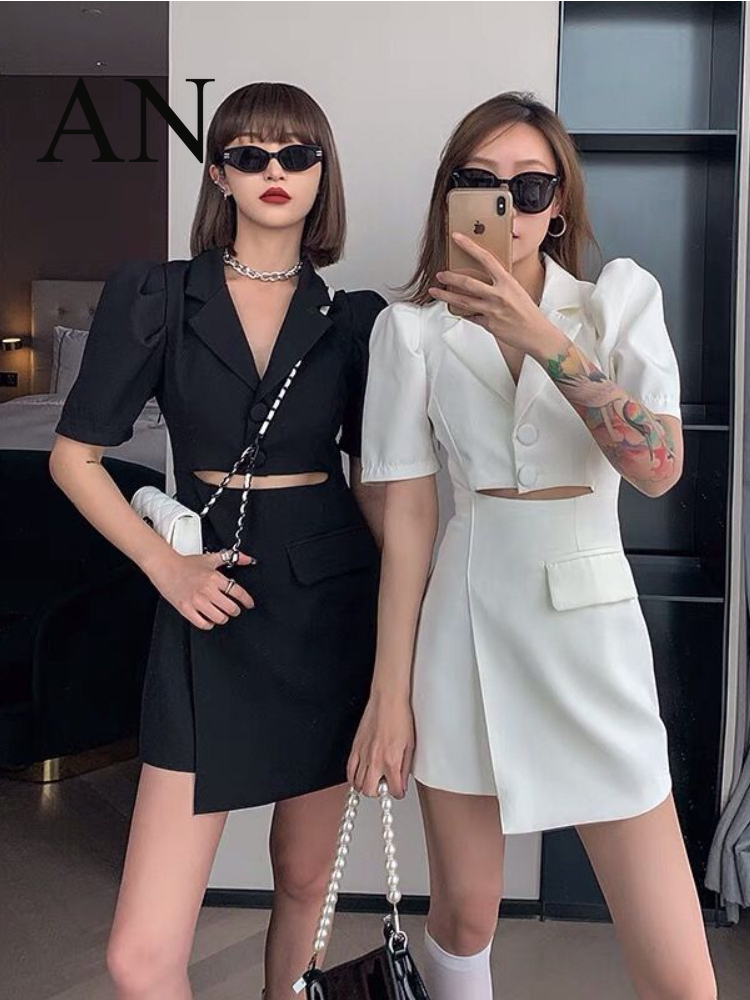 Suit SkirtSet Women Summer Bubble Short Sleeve Loose Temperament Suit Skirt Set Blazer and Skirt Set Skirt Set