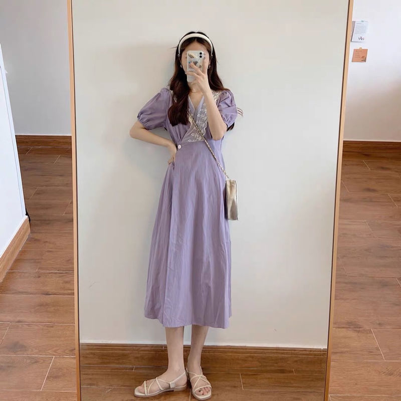Summer Ladies Dress Large Size Women's Retro Style Temperament French Style Dress
