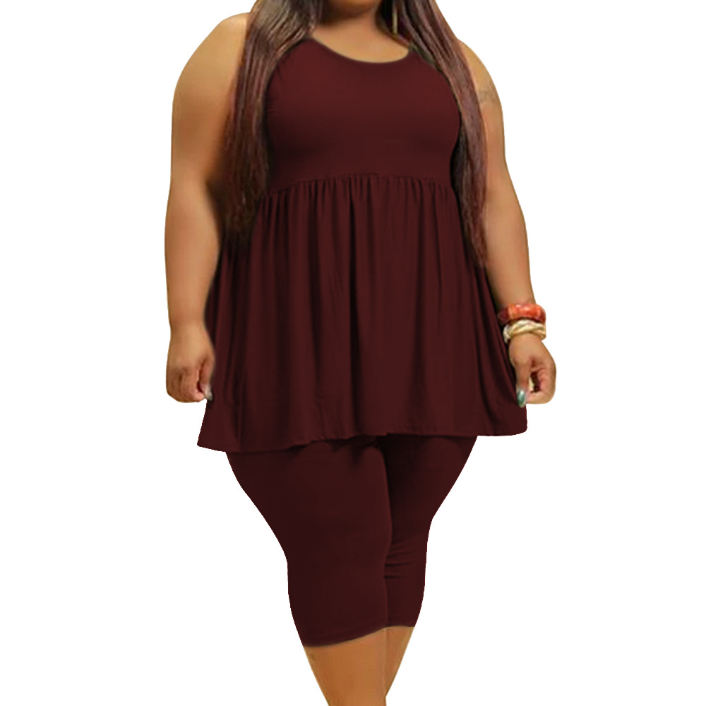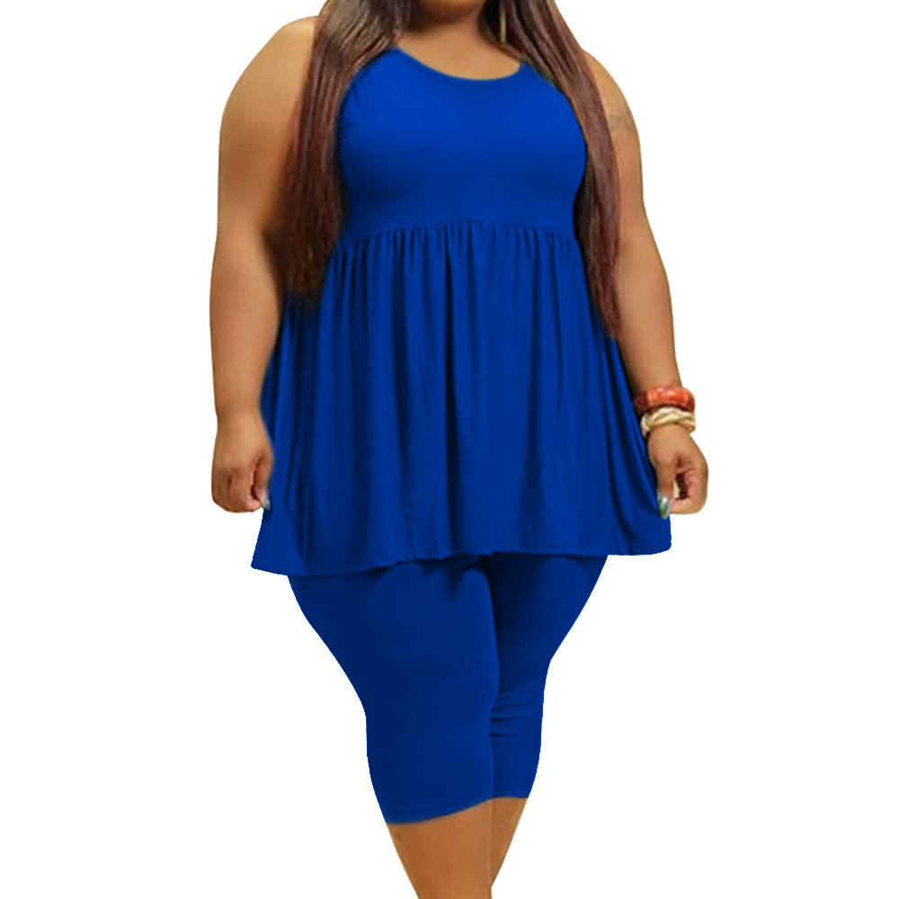 Summer Plus Size Two Piece Women's Clothing Sexy Sleeveless Draped Solid Color Casual Loose Short Suit dropshipping