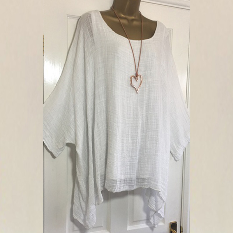 Women Casual Cotton Linen Pile Sleeves Large sized T-Shirt Blouse Ladies Tops Vintage Linen Blouse Female Top