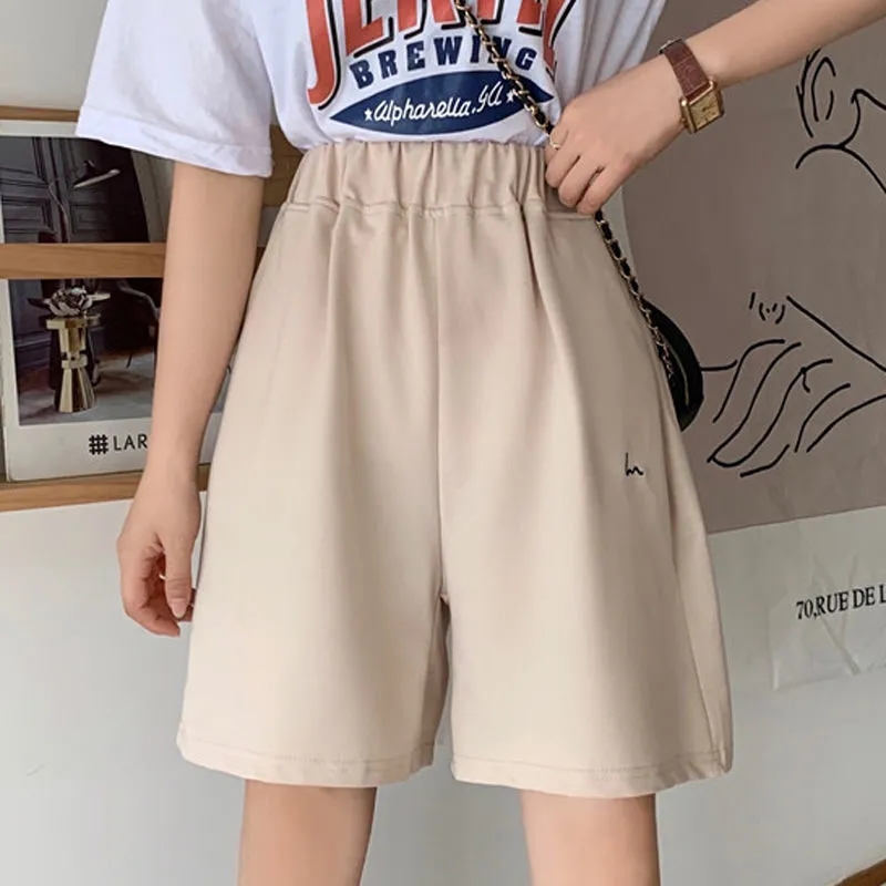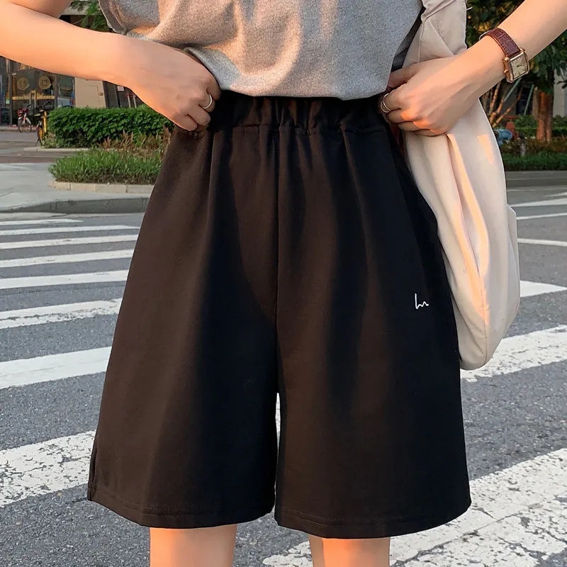 Summer Women Five-point Pants Sweet Casual Harajuku Cotton Sports Loose Thin Wide-leg Pattern Printing Elastic Girls Shorts
