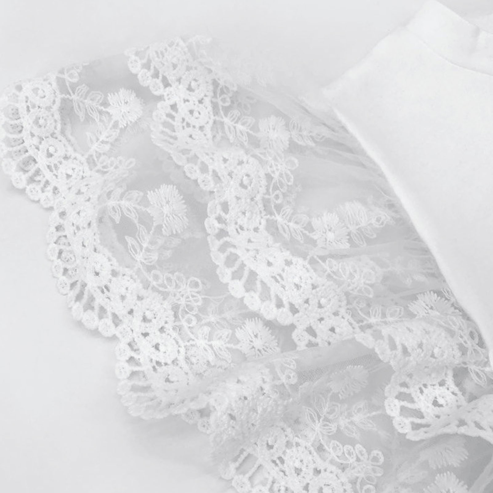 The shirt is a short-sleeved design, and the hollow lace design on the sleeves makes the clothes simple and not monotonous.