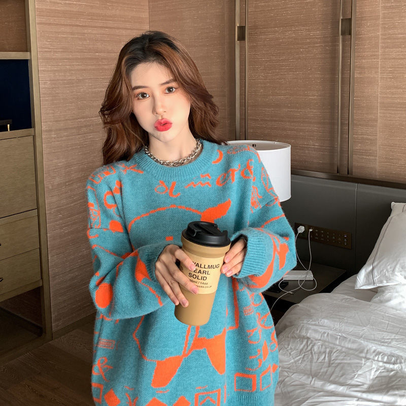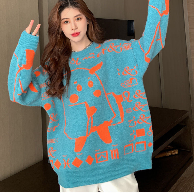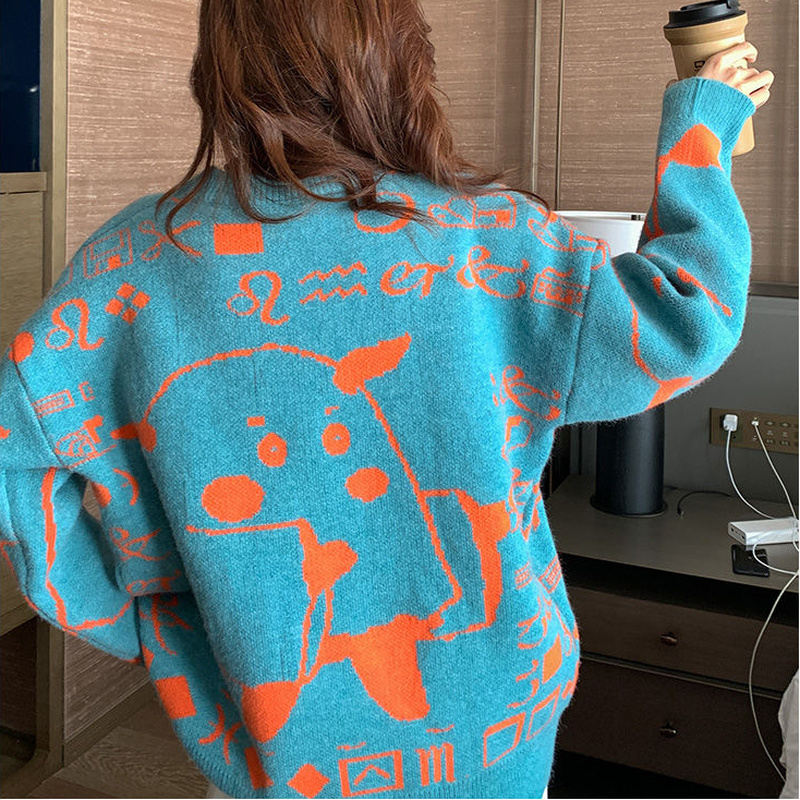 Sweater Cartoon Pattern Loose Autumn and Winter Pullover Version Round Neck Long Sleeve Knitted Top All-match Women
