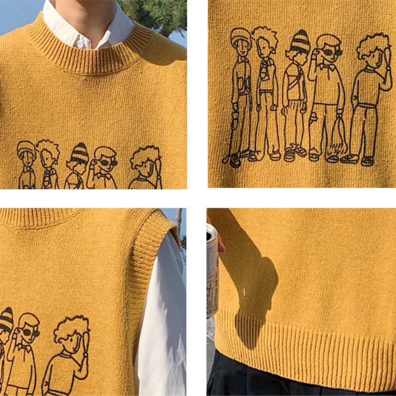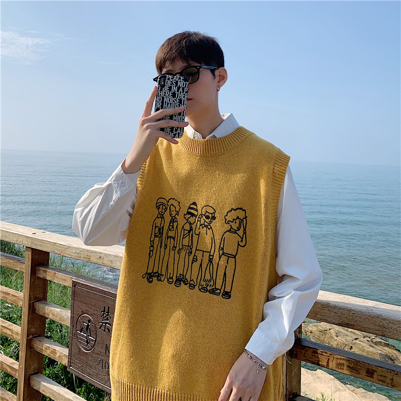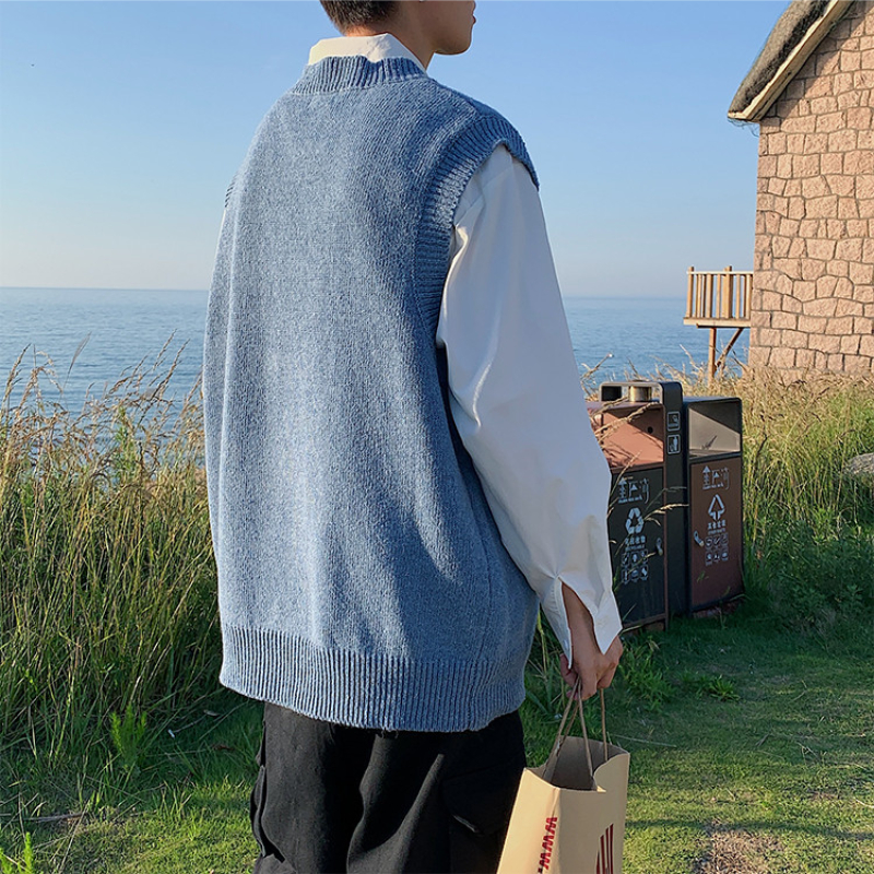 Sweater Vest Men Round Neck Sleeveless Sweaters Loose Oversize Preppy College Males All-match Knitwear Clothing Spring Daily