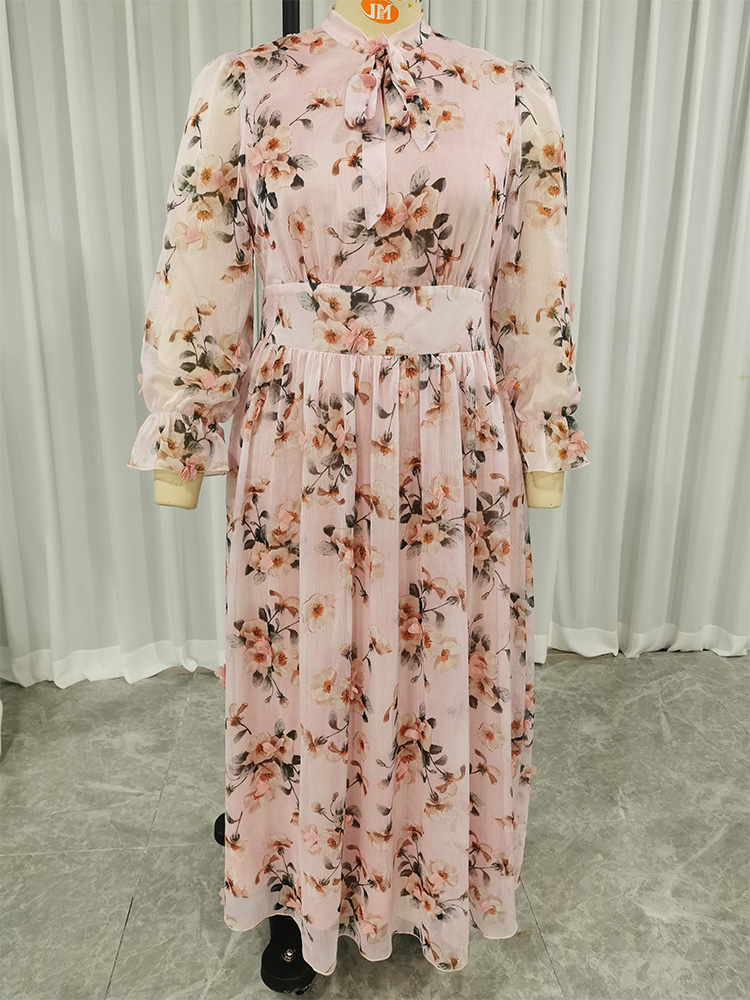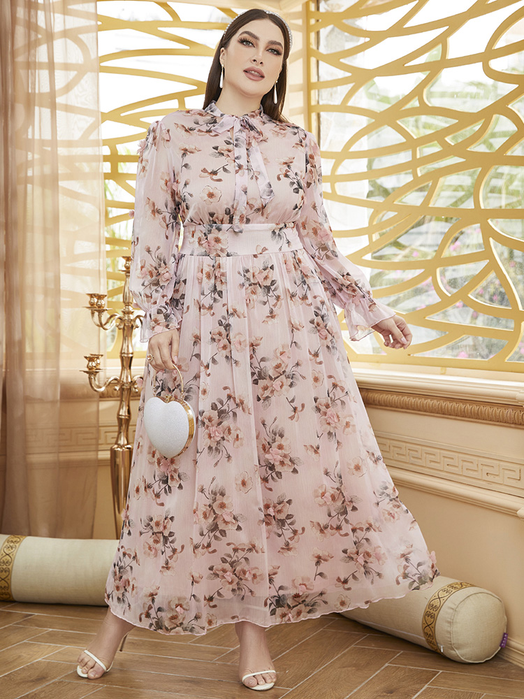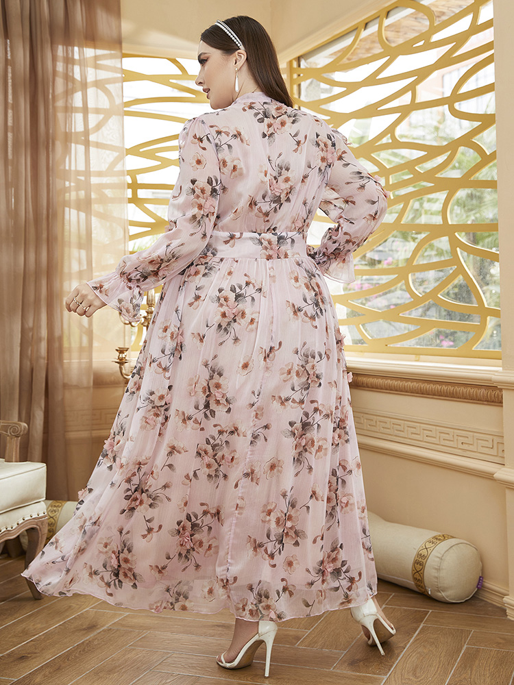 TOLEEN Women Large Plus Size Maxi Dress Spring Pink Chic Elegant Long Sleeve Floral Evening Party Wedding Festival Clothing