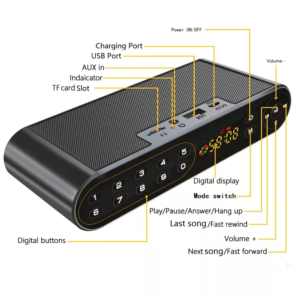 Functions: Bluetooth connection, plug 3.5mm wire connection