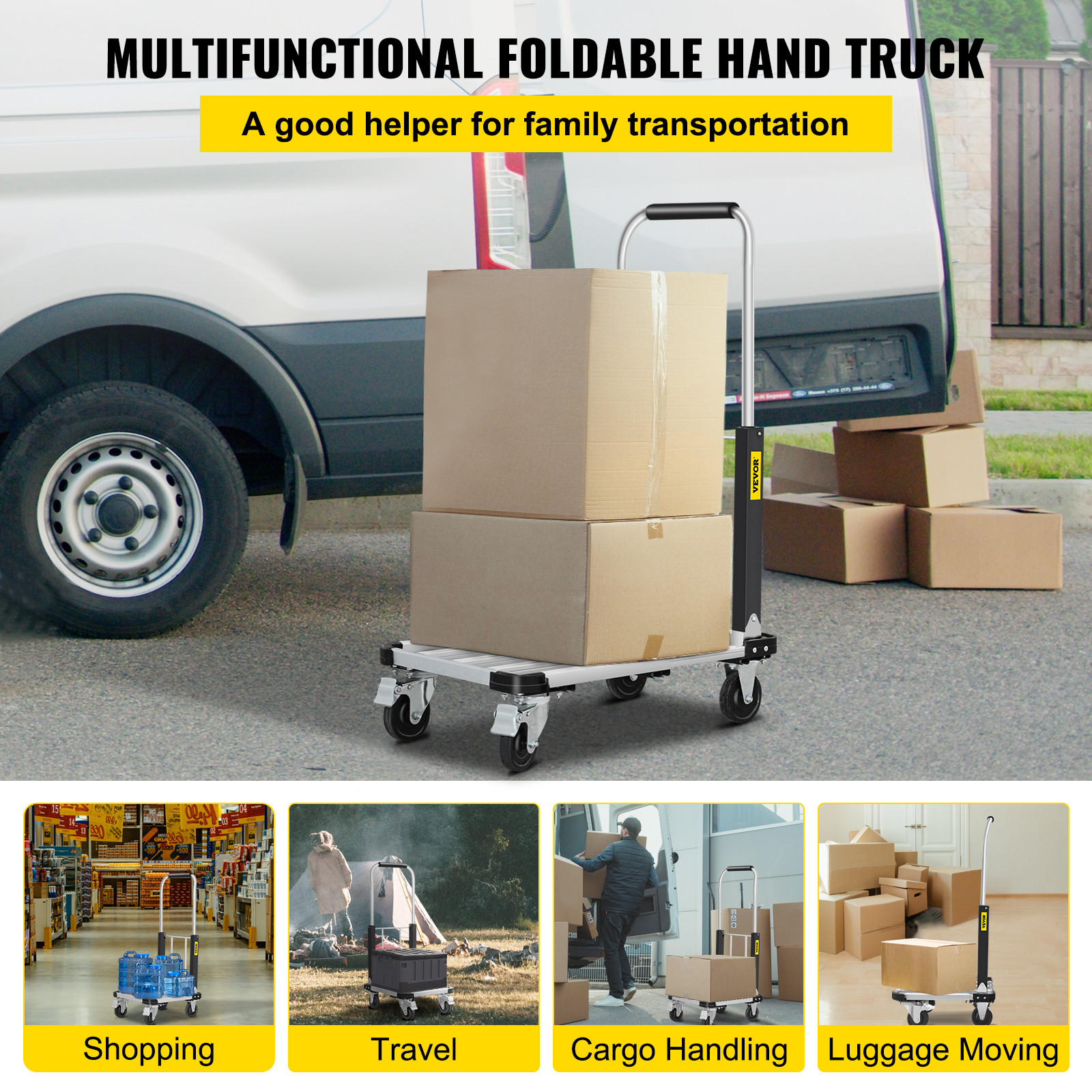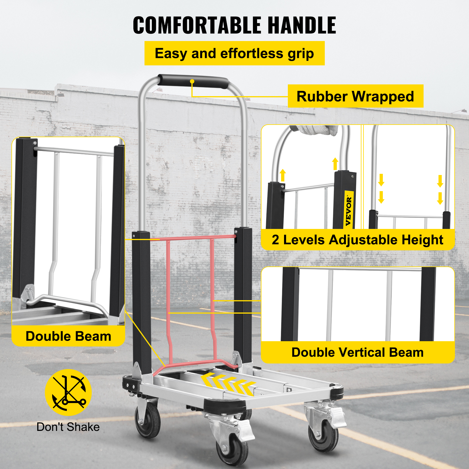 Our folding trolley features premium aluminium alloy material, a lightweight and compact foldable design, and is easy to carry around. VEVOR Folding Cart will become an assistant to help you carry items during shopping, traveling, and moving, saving you time and energy. Look no further than VEVOR's pushcart. Let's get rolling.