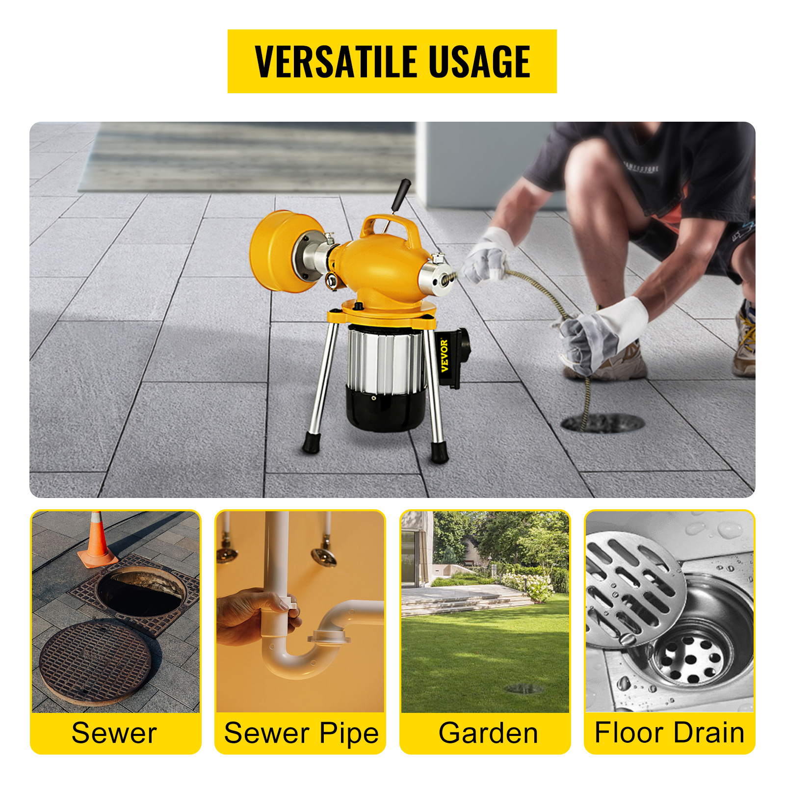 - Wide Application: This sewer machine is widely used in sewers, floor drains, pipes, bathrooms, floor sewer. Once you own this machine, you can clean the pipes yourself, rather than paying several hundred bucks to call in a plumber.