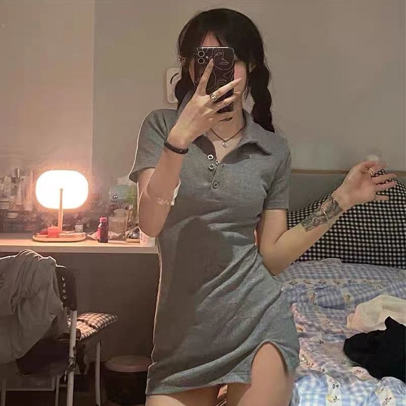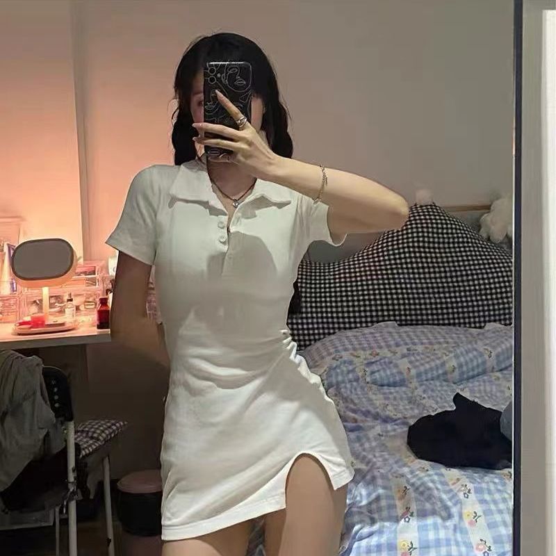 Vintage Summer Short Sleeve Button Lapel Sexy Mini Dress Women Streetwear Party Elegant Y2k Pencil Dresses Vestidos