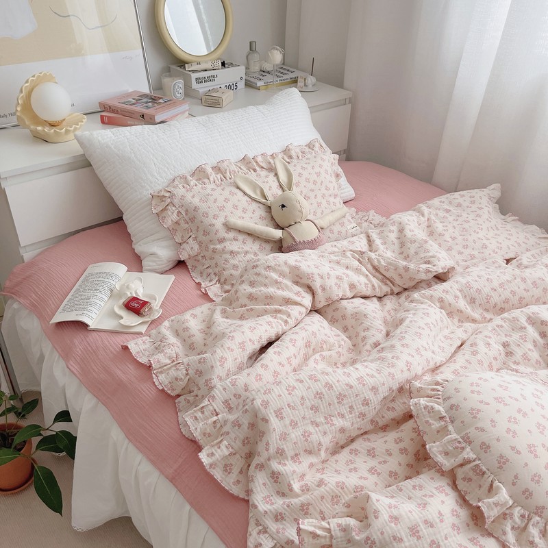 Korean Vintage Floral Printed Ruffled Cotton Baby Duvet Cover Kids Children Infant Cot Crib Duvet Covers Quilt Cover Bedding