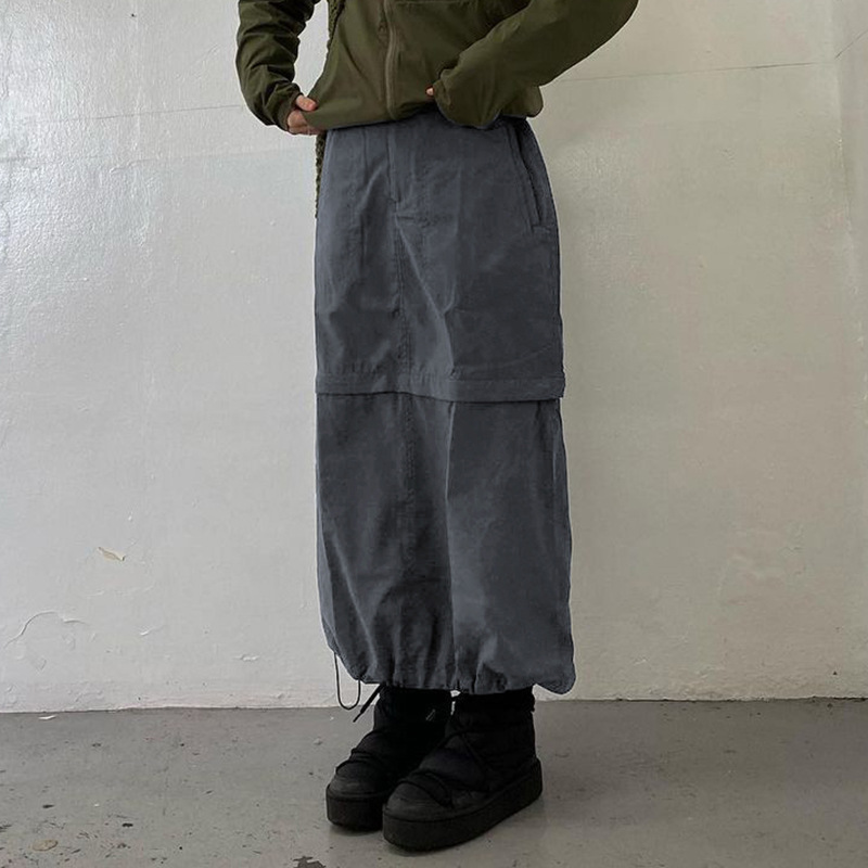 WeiYao Khaki Casual Long Cargo Skirts Women Stitching Vintage Baggy Streetwear Outfits Split Low Waist LooseSize Skirt
