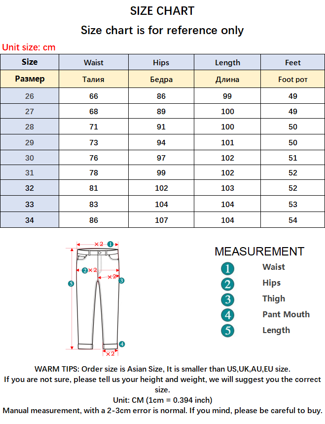note! Measurement requires measuring pants, measuring body is the wrong way