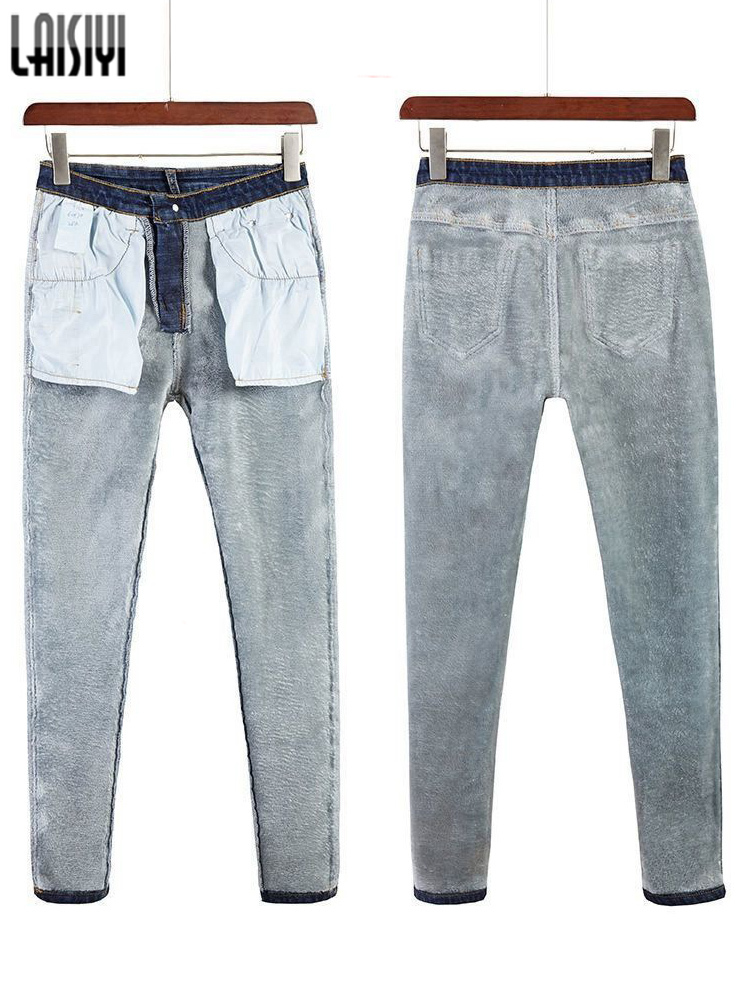 New Winter Thick Velvet Women High Waist Skinny Jeans Simple Fleece Warm Slim Fit Stretch Ladies Casual Denim Pencil Pants