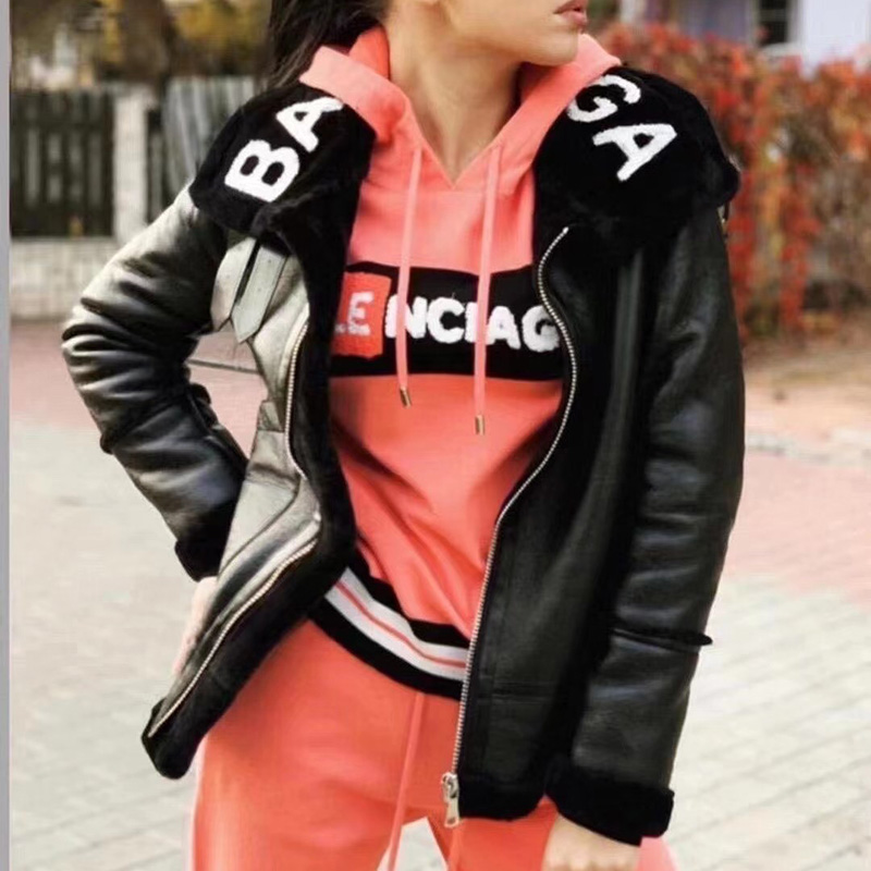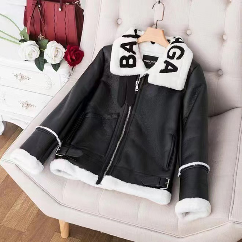 Winter Women's High PU Coat Plus Size Thick Warm Lamb Fur Short Letter Tie Dye Woman Winter Coat