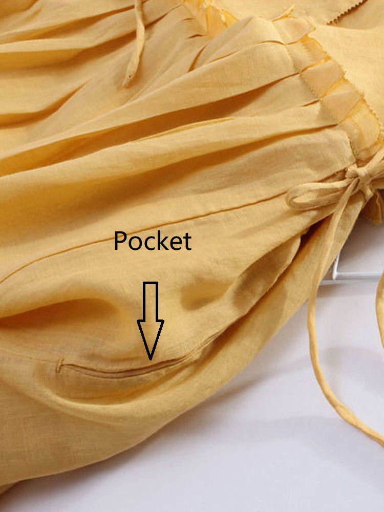 Women Summer Simple Style Cotton Linen Dresses Long Sleeve Drawstring Large Swing Solid Color Shirt Dress