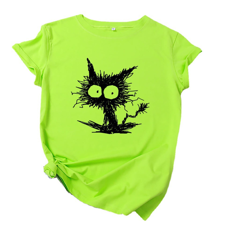 Women Summer Tshirt Cotton Casual Cat Printing Female Graphic Kawaii T Shirts Ladies Regular Short Sleeve Tees Tops