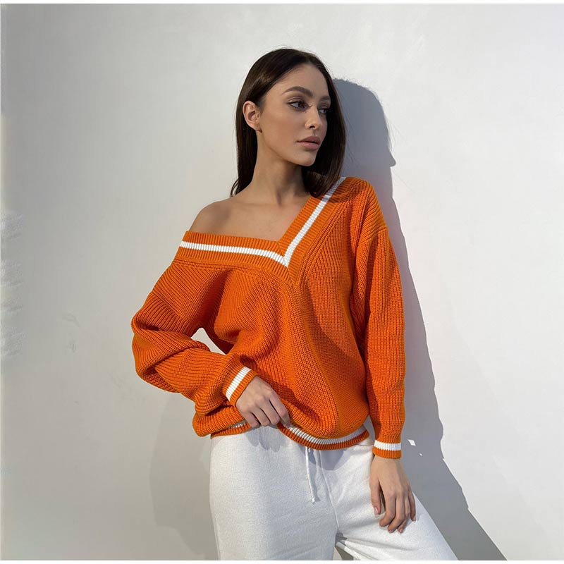Women V-Neck Long Sleeve Sweater Casual Long Sleeve Pullover Knitted Tops Autumn Winter Female Sweater
