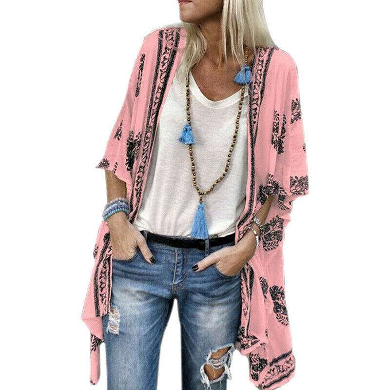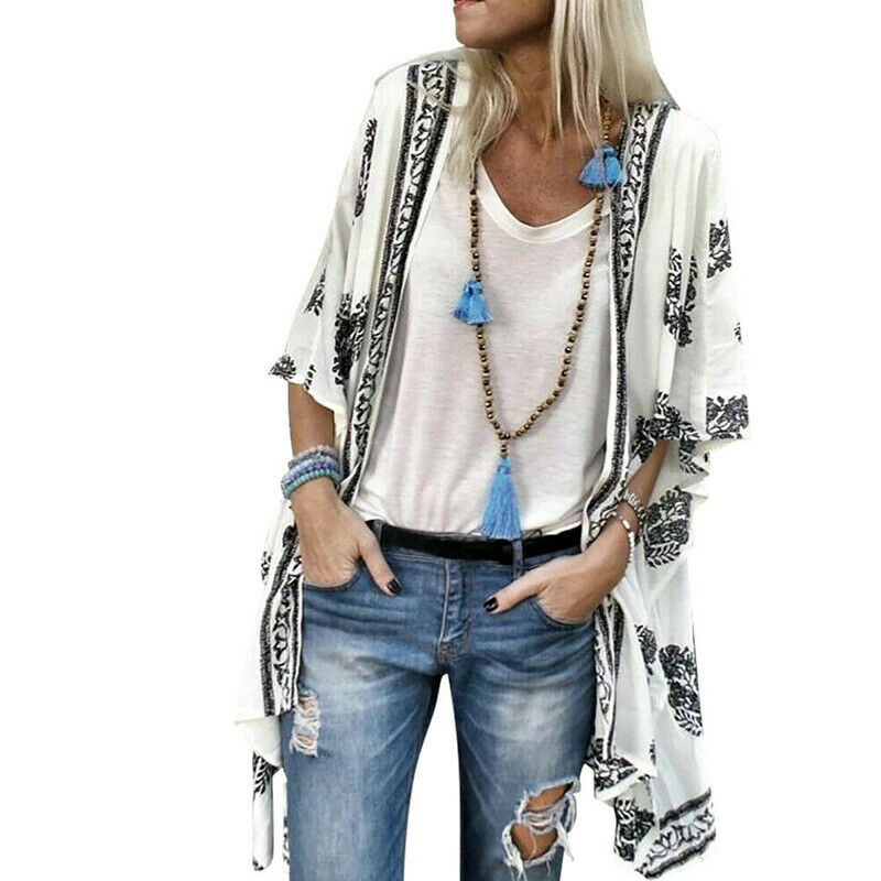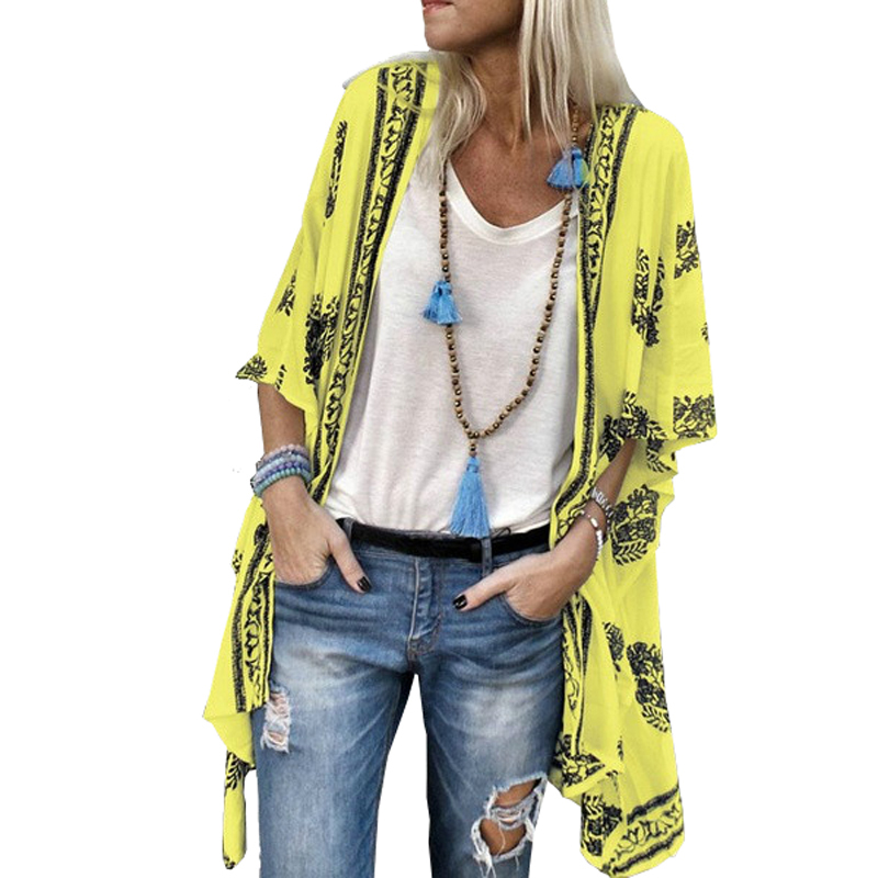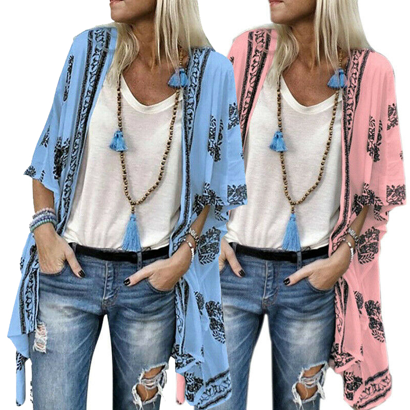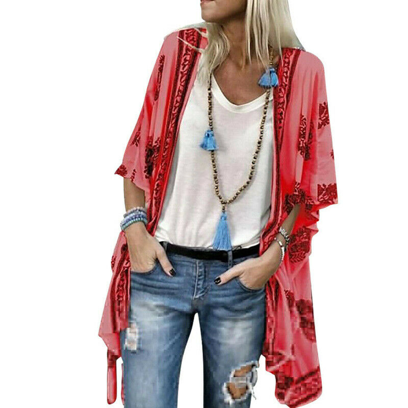 Women's Printed Cardigan Shirt Blouse Summer Kimono Long Sleeve Boho Beach Cover Tops Ladies Long Blouses Shirts Plus Size 5XL
