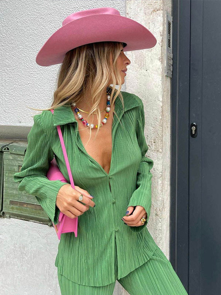 Women's Tracksuit Two Piece Sets Loose Long Sleeve Shirt Tops and Wide Leg Pants Elegant Suits Summer Casual Female Outfits