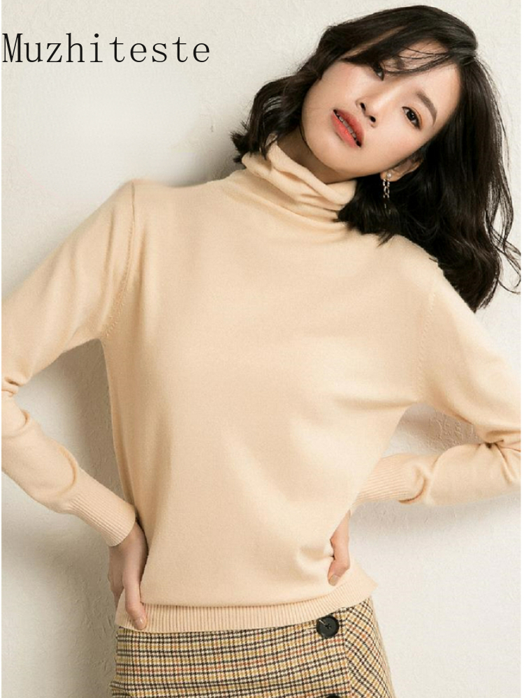 Women's Turtleneck Knitted Sweaters Long Sleeve Basic Pullover Jumper Autumn Winter Beige Knit Turtlenecks for Sweater Women