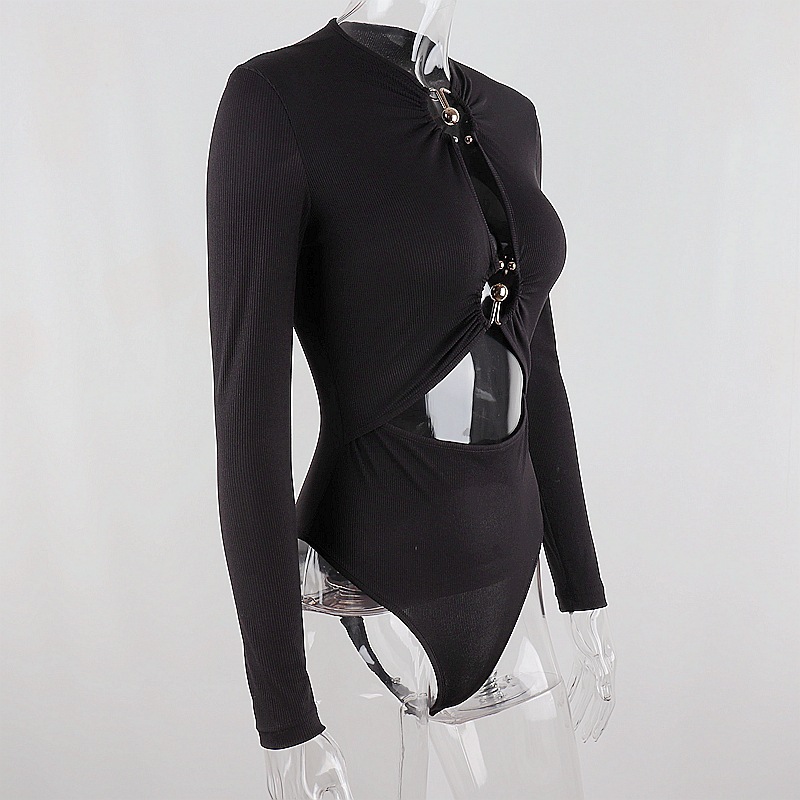Yimunancy Long Sleeve Bodycon Bodysuit Women Cut Out Sinny Bodysuit Autumn Sexy Bodysuit Body Femme