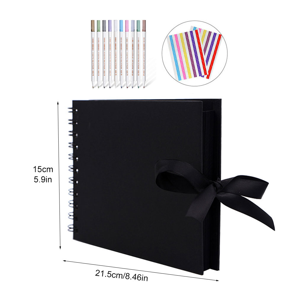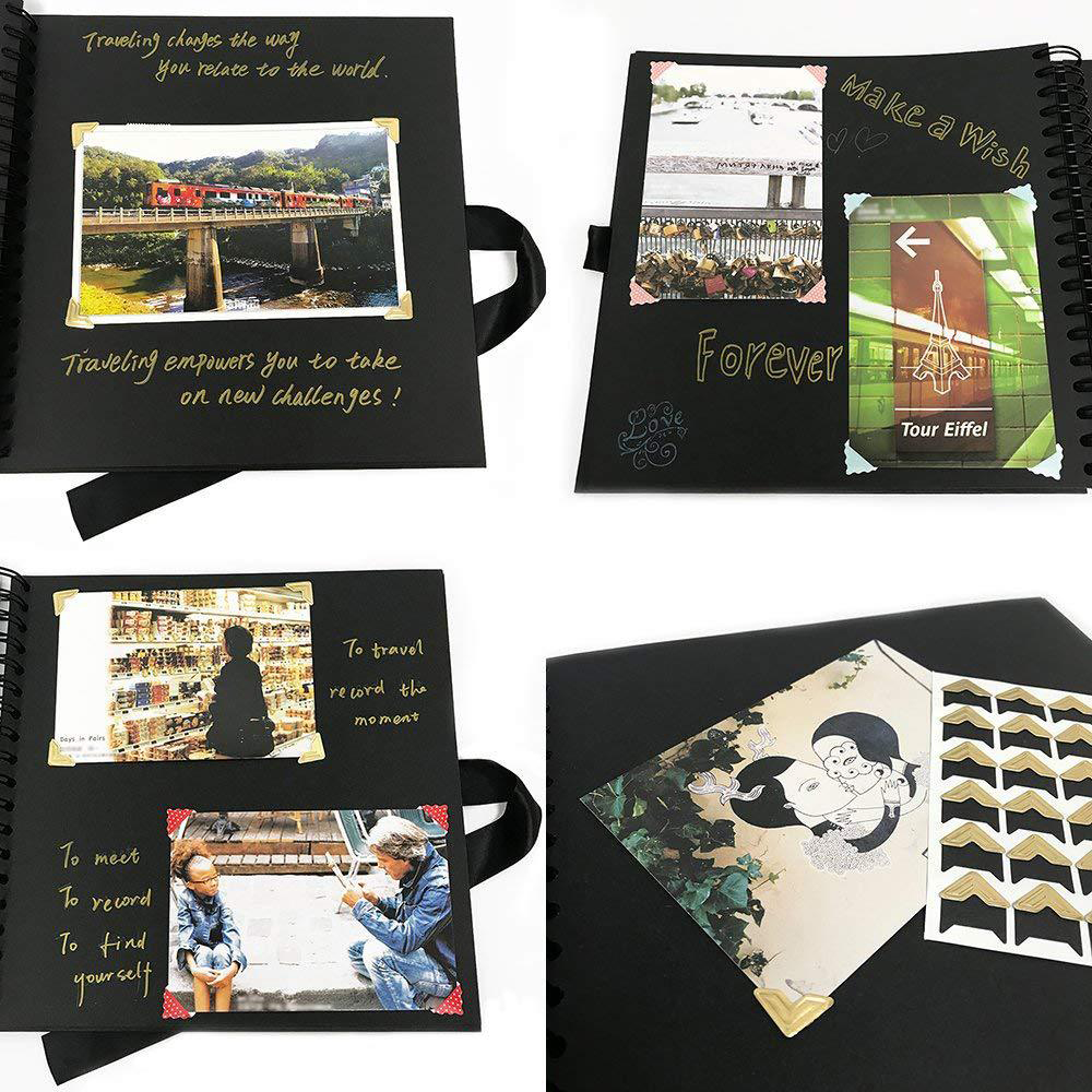 1. Cardboard cover, there are exquisite black ribbons on the hard card cover, and there are high-quality thick kraft paper black pages inside, which will not fade and keep your beautiful moments lasting