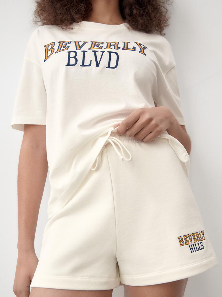 Zach AiIsa spring age-reducing all-match sports style letter embroidery T-shirt + elastic high waist sports casual pants