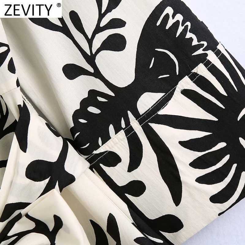 Zevity Women Vintage Black Totem Print Bow Sashes Shirt Dress Female Chic Three Quarter Sleeve Casual Slim Midi Vestidos DS8640